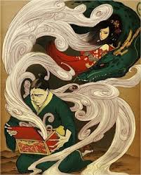 Em poucos momentos chegaram a um estranho palácio. Era o palácio do dragão, a morada do senhor da água. Lá, uma linda princesa os aguardava. Ela saudou calidamente o vendedor e agradeceu-lhe pelas flores tão bonitas que as águas do rio todos os dias lhe traziam. Ela o recebeu com um suntuoso banquete, ao som de delicadas melodias e com graciosas danças de peixes. Encantado, o vendedor permaneceu ali por um longo tempo.